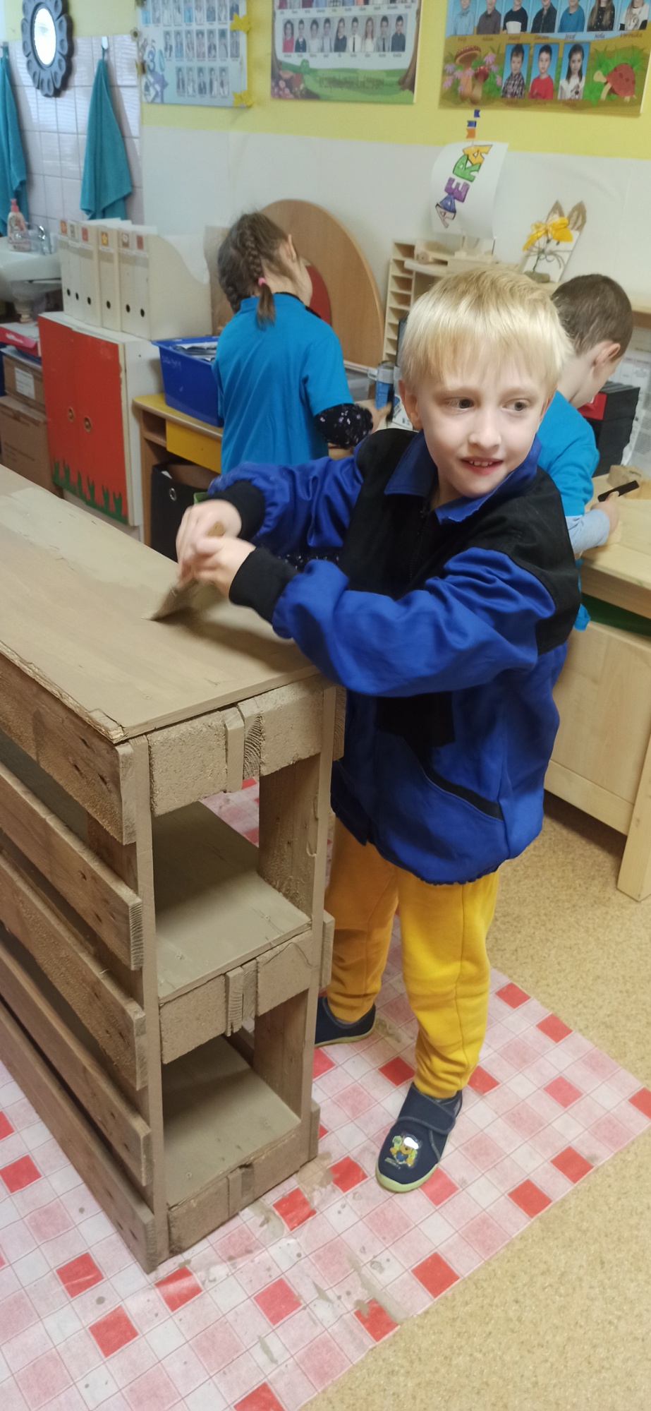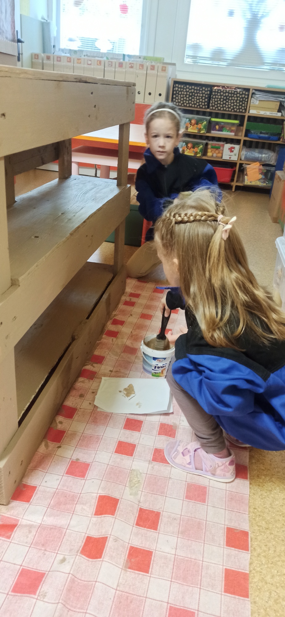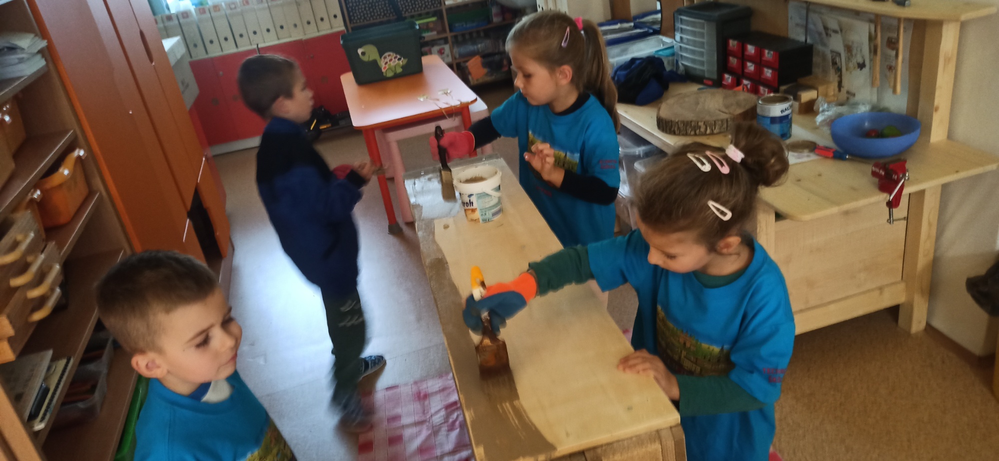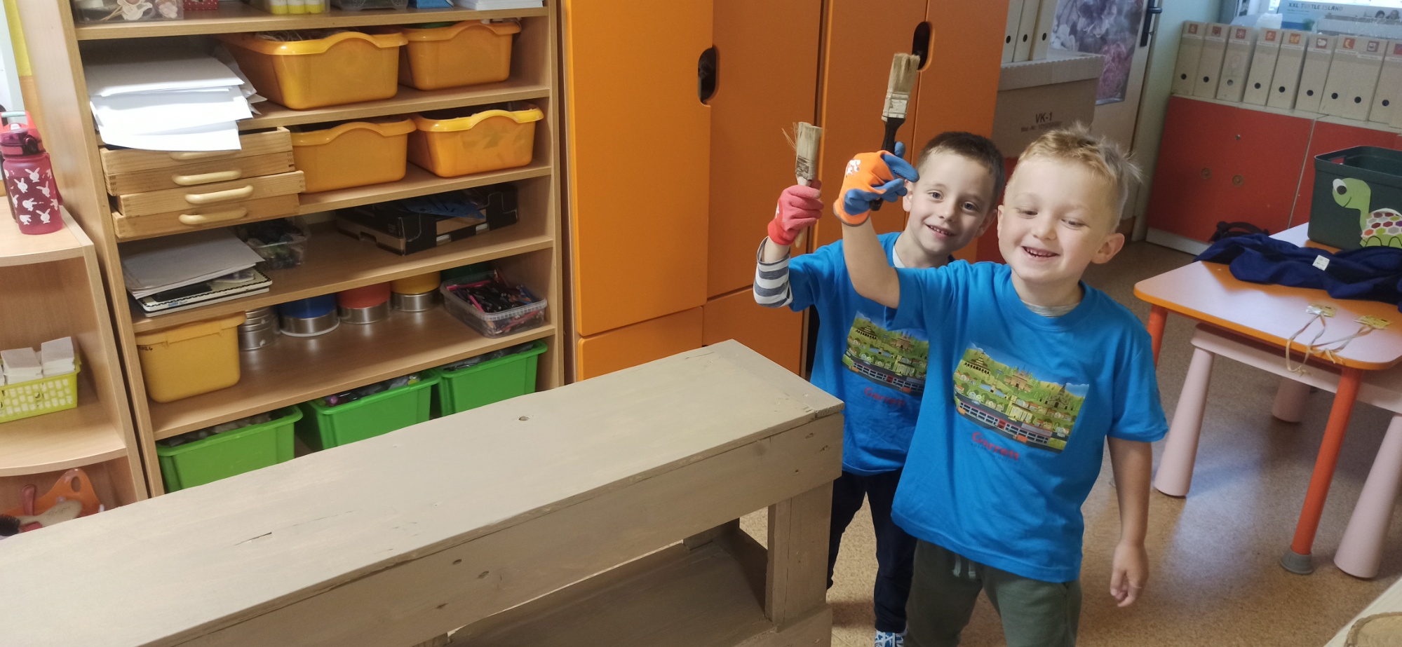 Od septembra trieda Korytnačiek usilovne pracuje na projekte POLIČKA NA KNIHY. Predškoláci najskôr brúsením odstránili nerovnosti police, potom ju natreli farbou na drevo, čaká nás už len dotvoriť podľa predstáv. Tešíme sa na ďalšie projekty